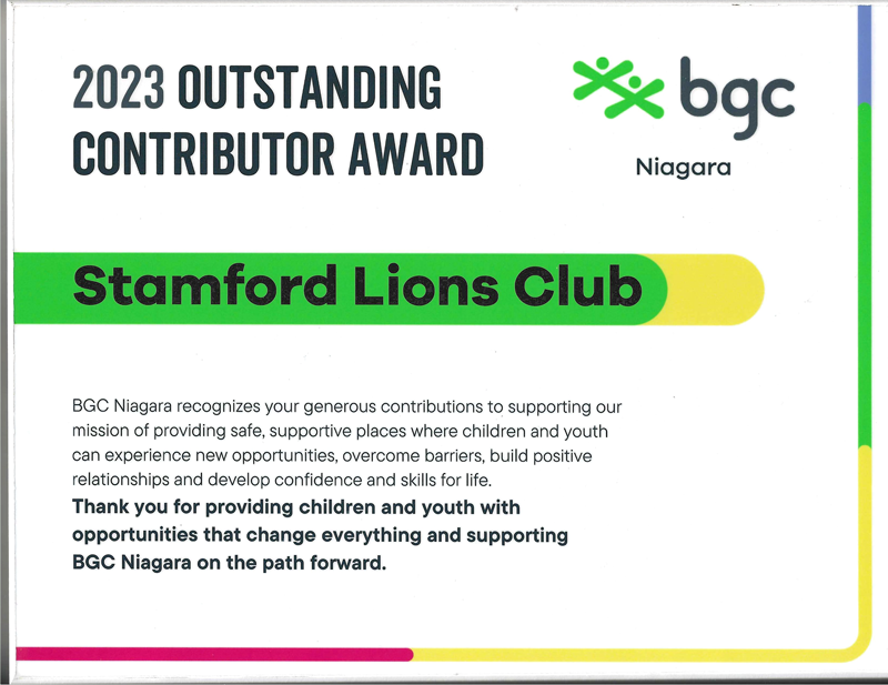 Boys and Girls Club of Niagara 2023 Outstanding Contributor Award