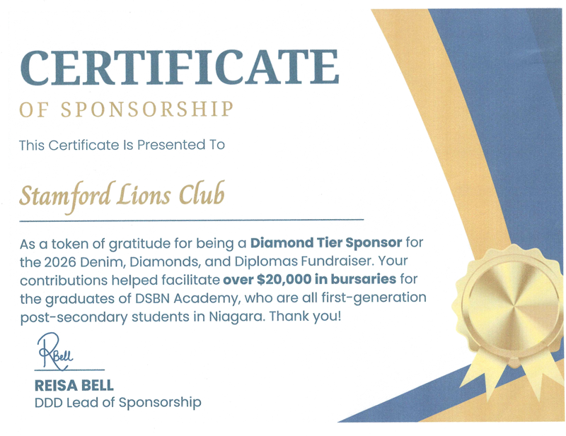 2026 Denim, Diamonds, and Diplomas Certificate of Sponsorship